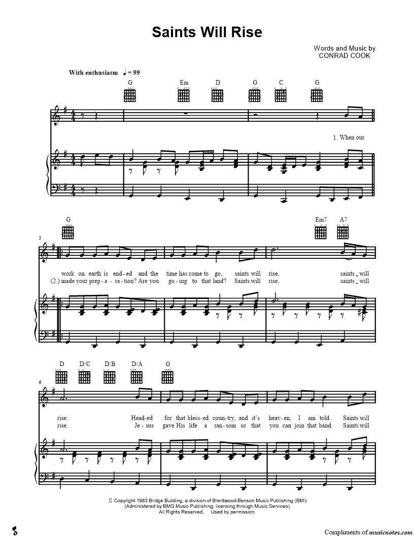 When our work on earth is ended and the time has come to go, saints will rise, saints will rise. |