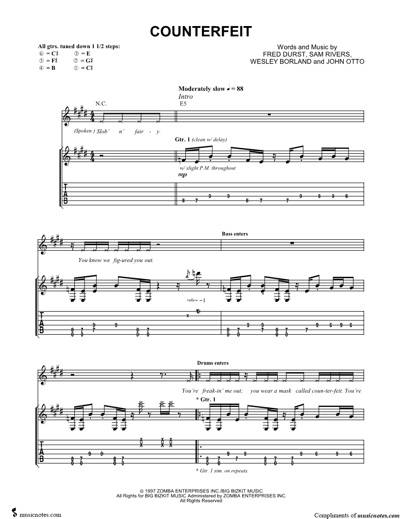 Voice, range: E4-B5 Guitar 1 Guitar 2 Guitar 3 | |