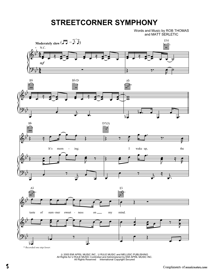 "Covers Rob Thomas recording well. Uses parenthesis to show back up parts. For skilled mu..." Read reviews
