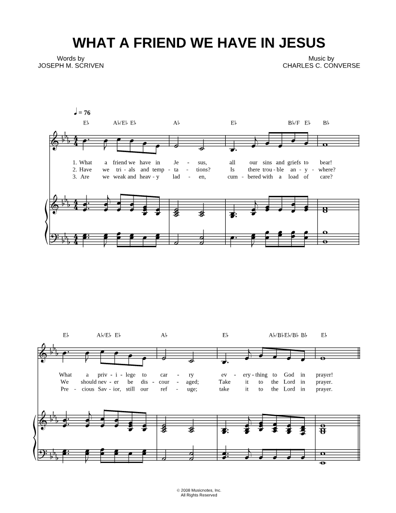What a friend we have in Jesus, all our sins and griefs to bear! |