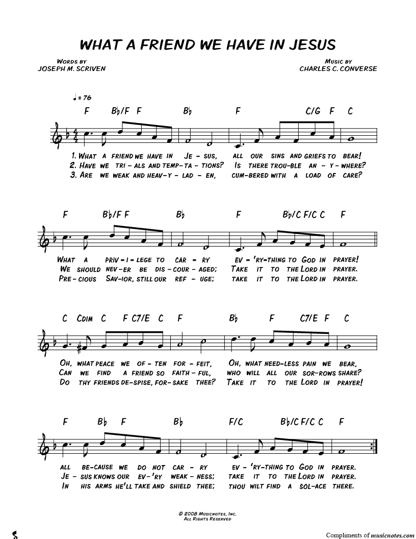 What a friend we have in Jesus, all our sins and griefs to bear! |