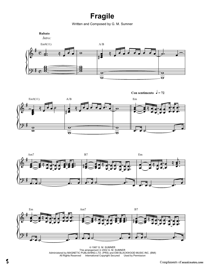 Sting Piano Solos |