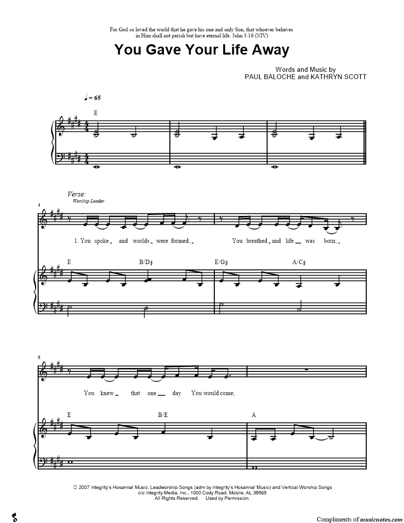 You Gave Your Life Away |
