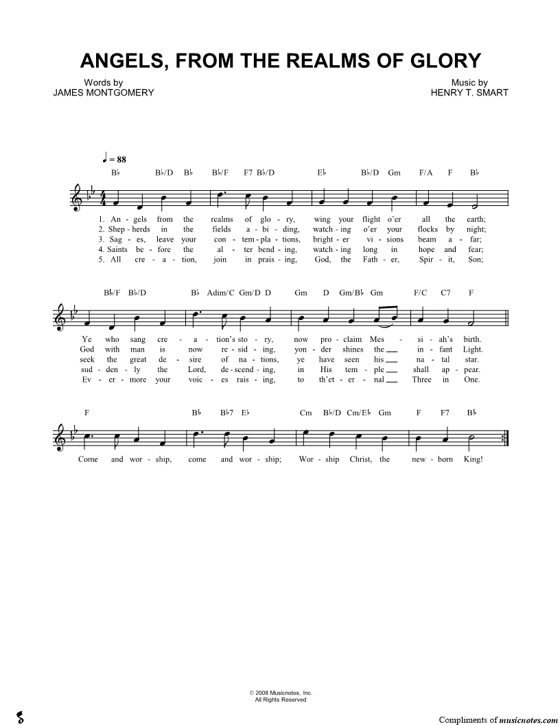 Angels from the realms of glory, wing your flight o'er all the earth; |
