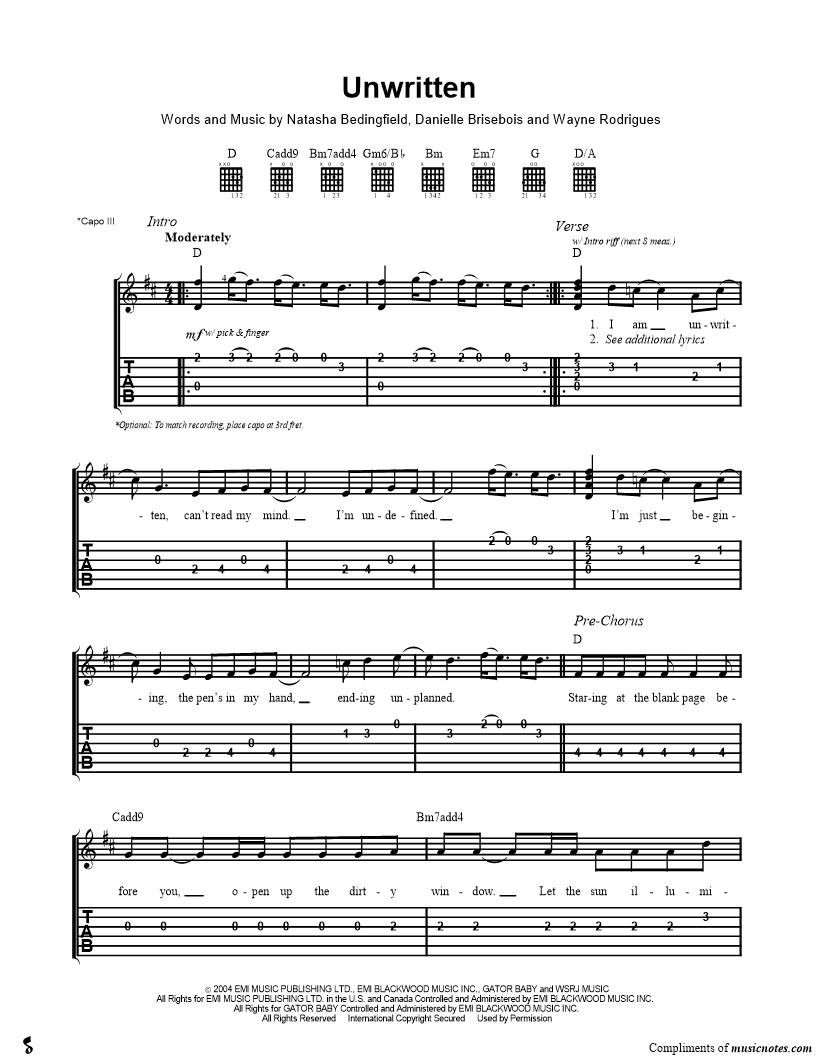 Guitar Tab Guitar/Vocal |