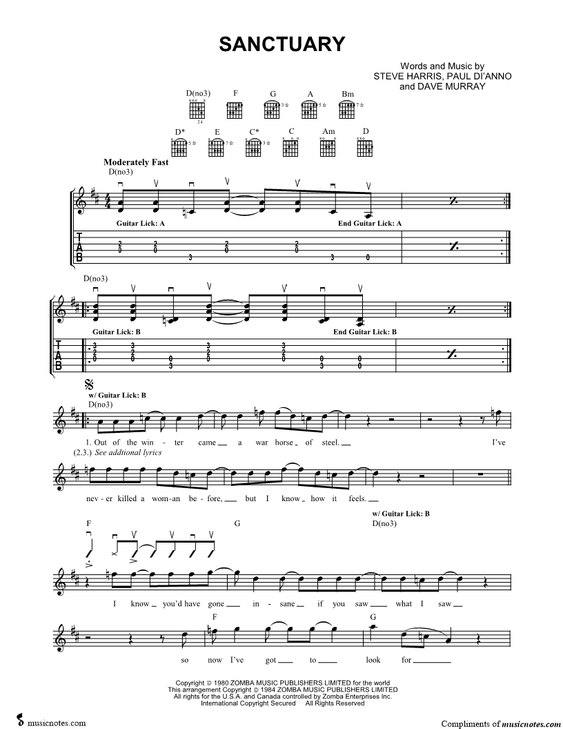 Guitar Tab Guitar/Vocal |