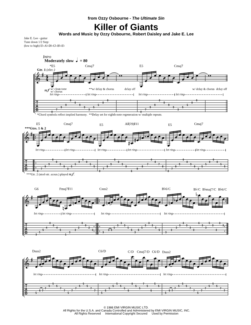 Voice, range: A4-B5 Guitar 1 Guitar 2 Guitar 3 Guitar 4 | |