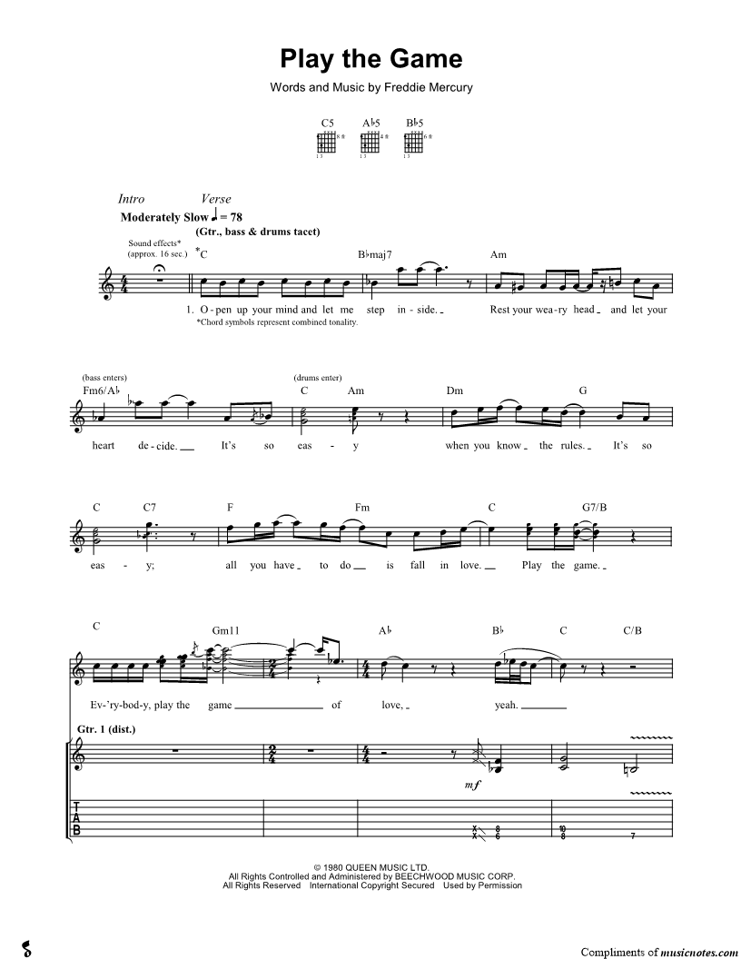 Guitar TAB Guitar/Vocal |
