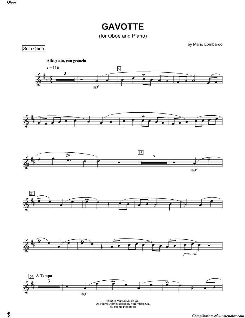 Gavotte for Oboe and Piano - Oboe part |