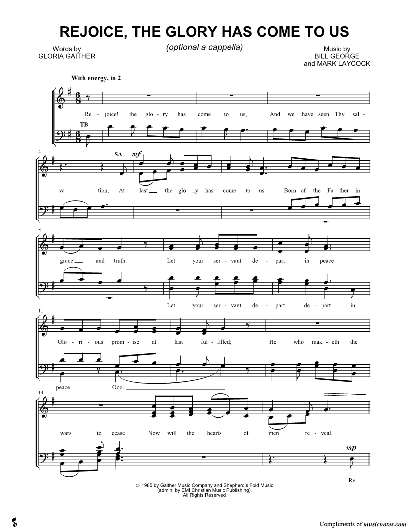 Rejoice! The glory has come to us and we have see Thy salvation; |