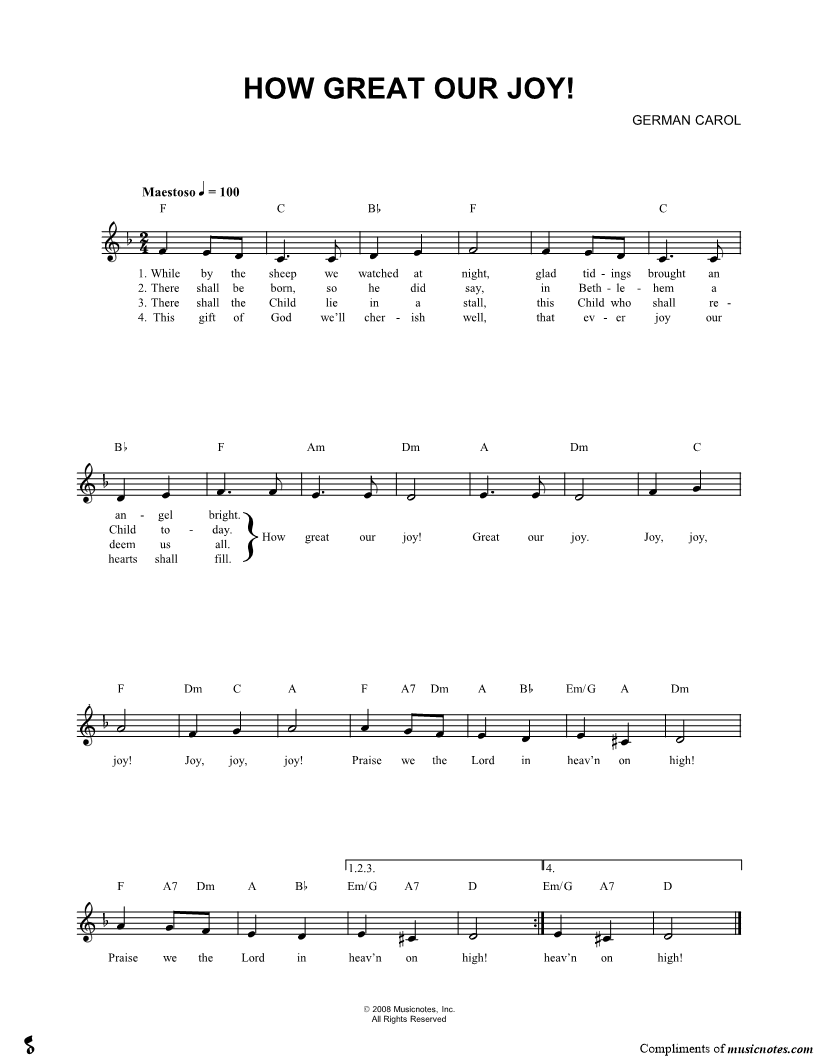 While by the sheep we watched at night, glad tidings brought an angel bright. |