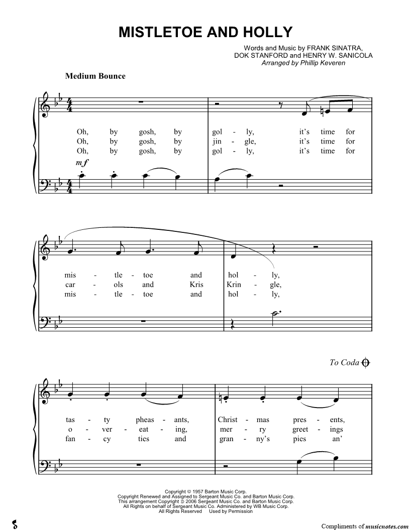 Oh, by gosh, by golly, it's time for mistletoe and holly, tasty pheasants, |