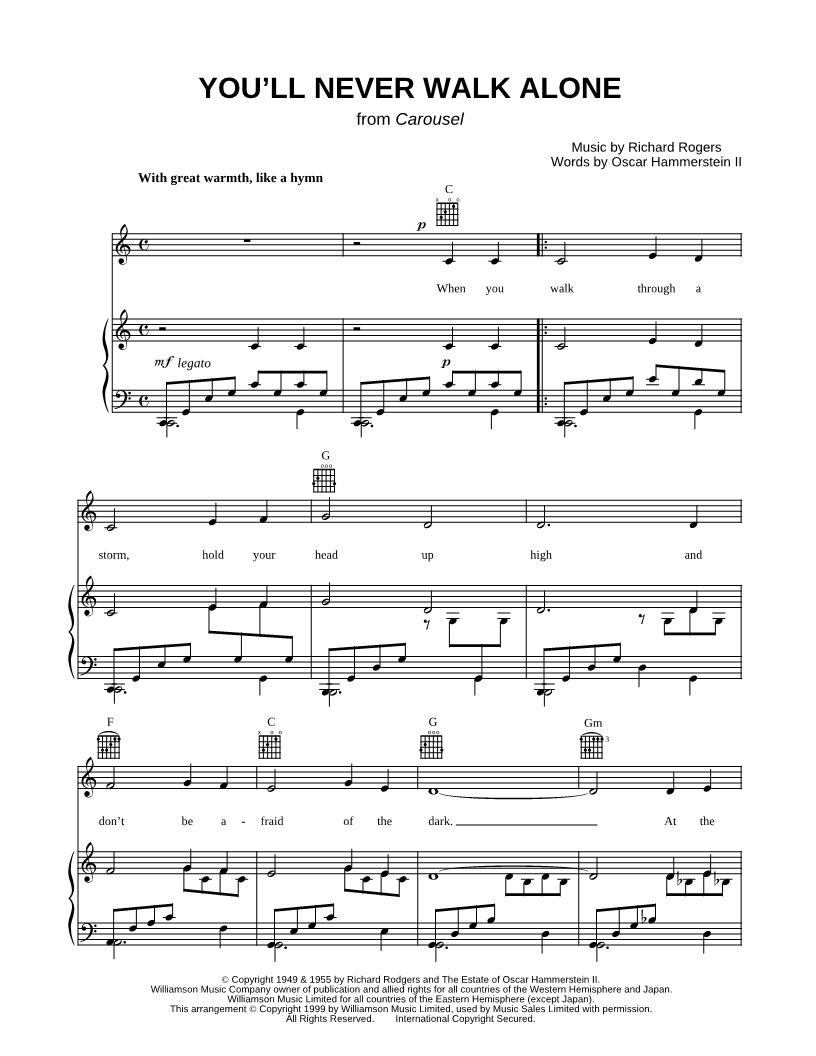 When you walk through a storm, hold your head up high and don't be afraid of the dark. |