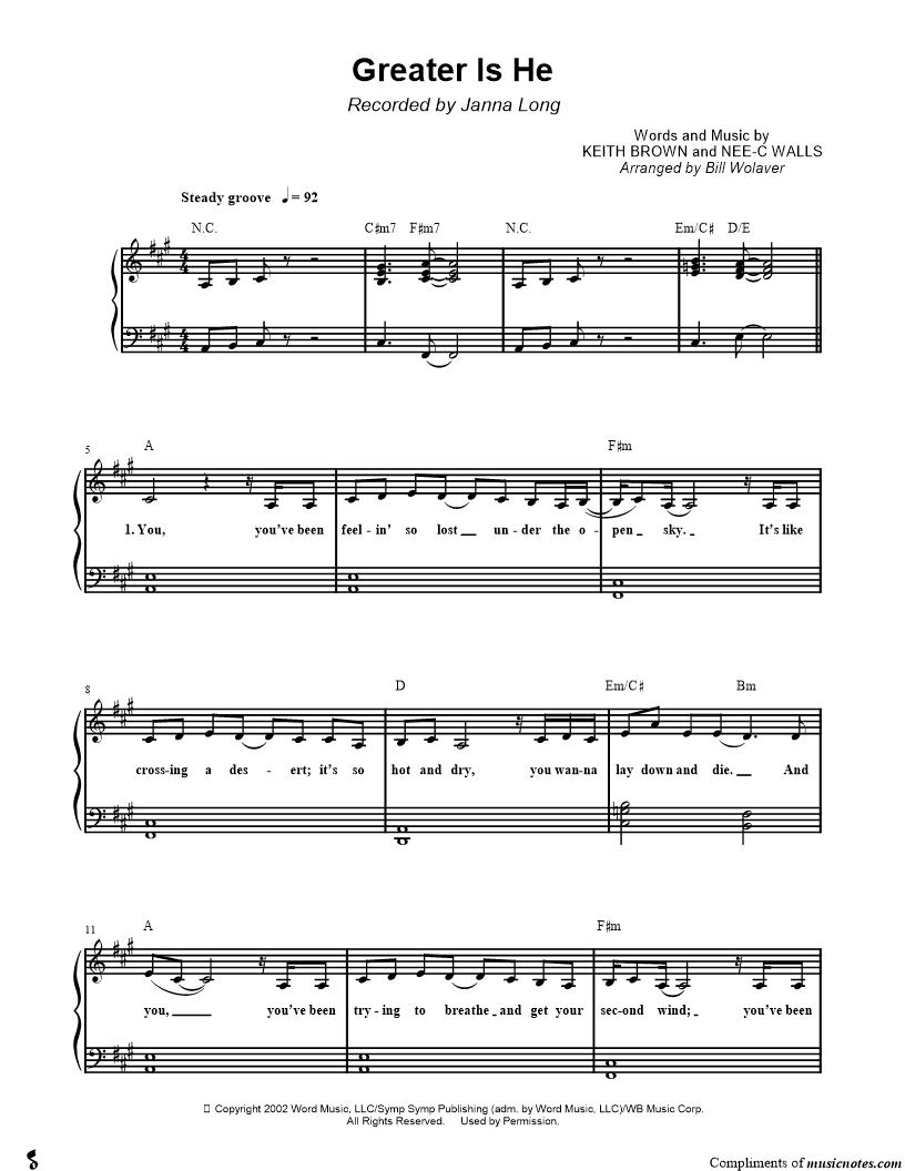 Many of the arrangements on Musicnotes have transpositions available, typically in C Major, as well as 3 sharps and 3 flats. If you do not see your desired key, you can request a transposition by reaching out to Customer Support.