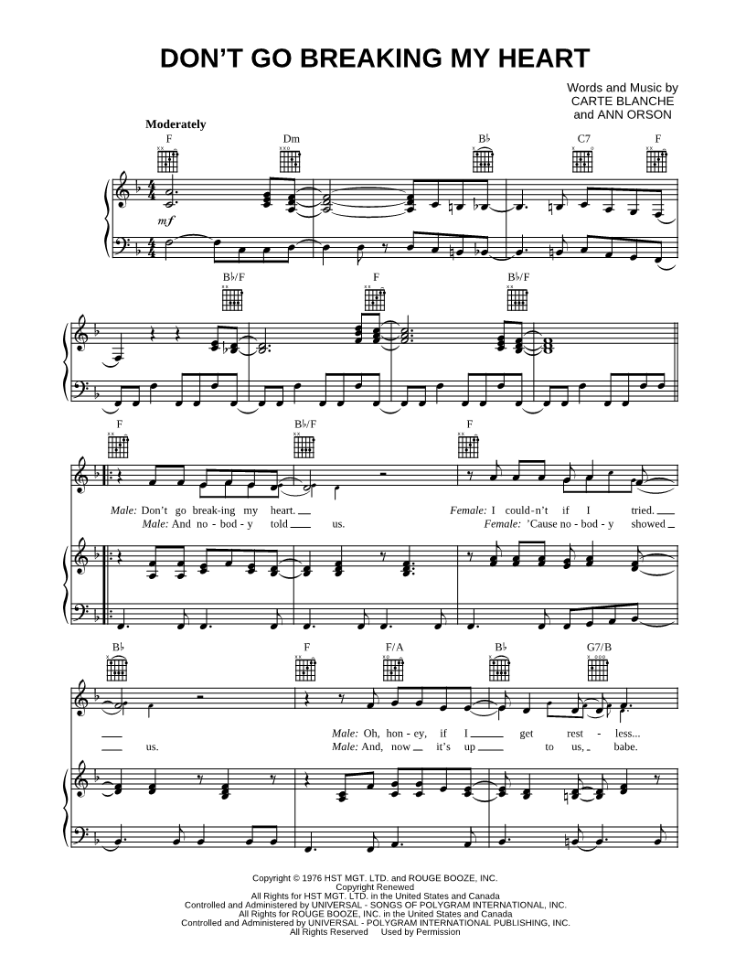 Male Don't go breaking my heart. |