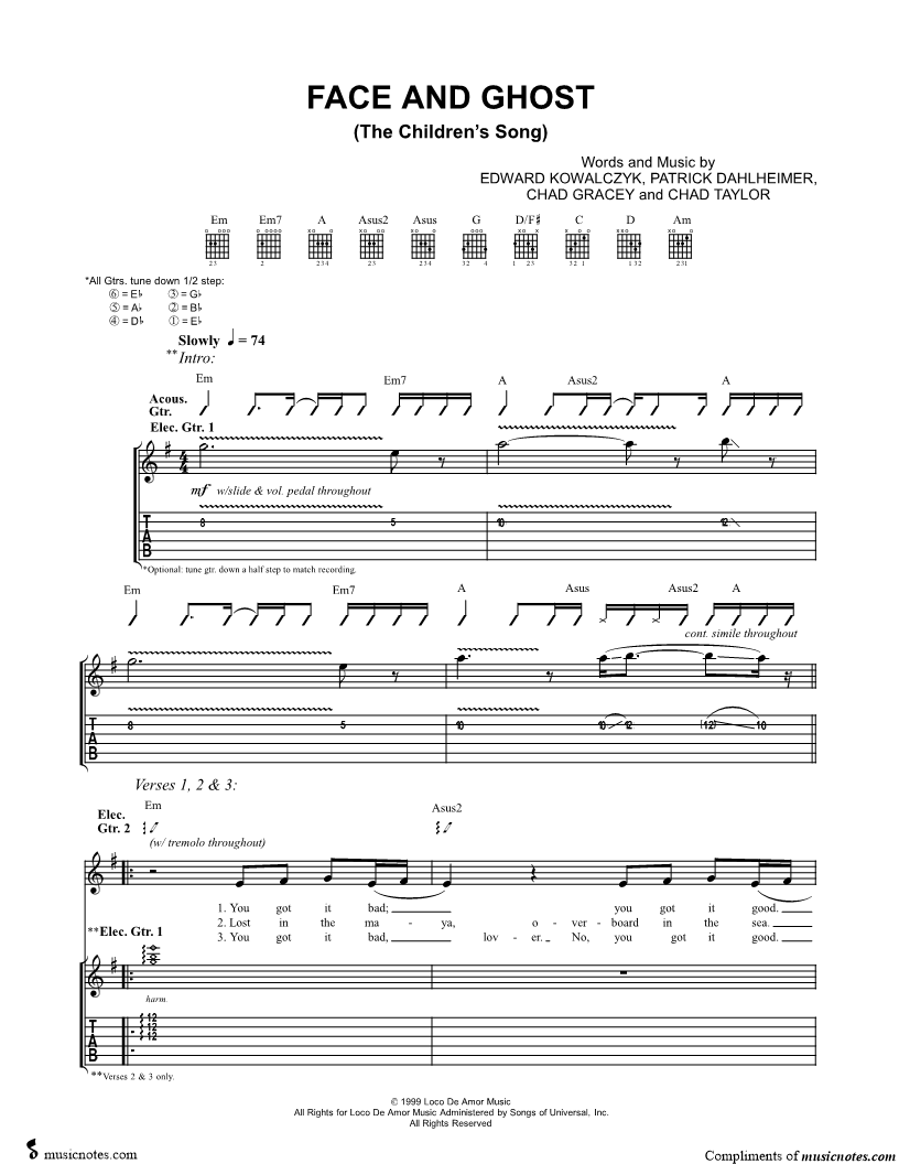 Voice, range: A3-B5 Acoustic Guitar Electric Guitar 1 Electric Guitar 2 Electric Guitar 3 Backup Vocals | |