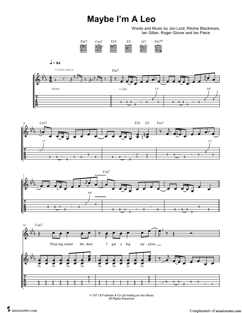 Guitar TAB Guitar/Vocal |