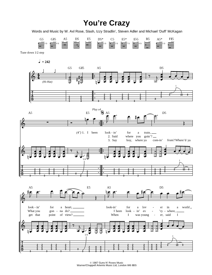 Guitar TAB Guitar/Vocal |