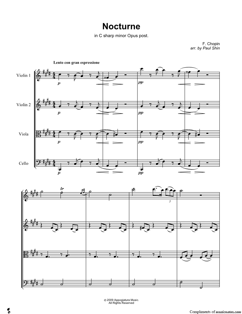 Nocturne in C# Minor, Opus post. for String Quartet - Score |