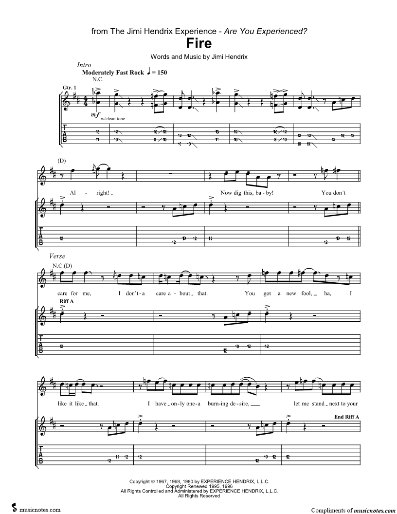 Guitar Tab Guitar/Vocal |