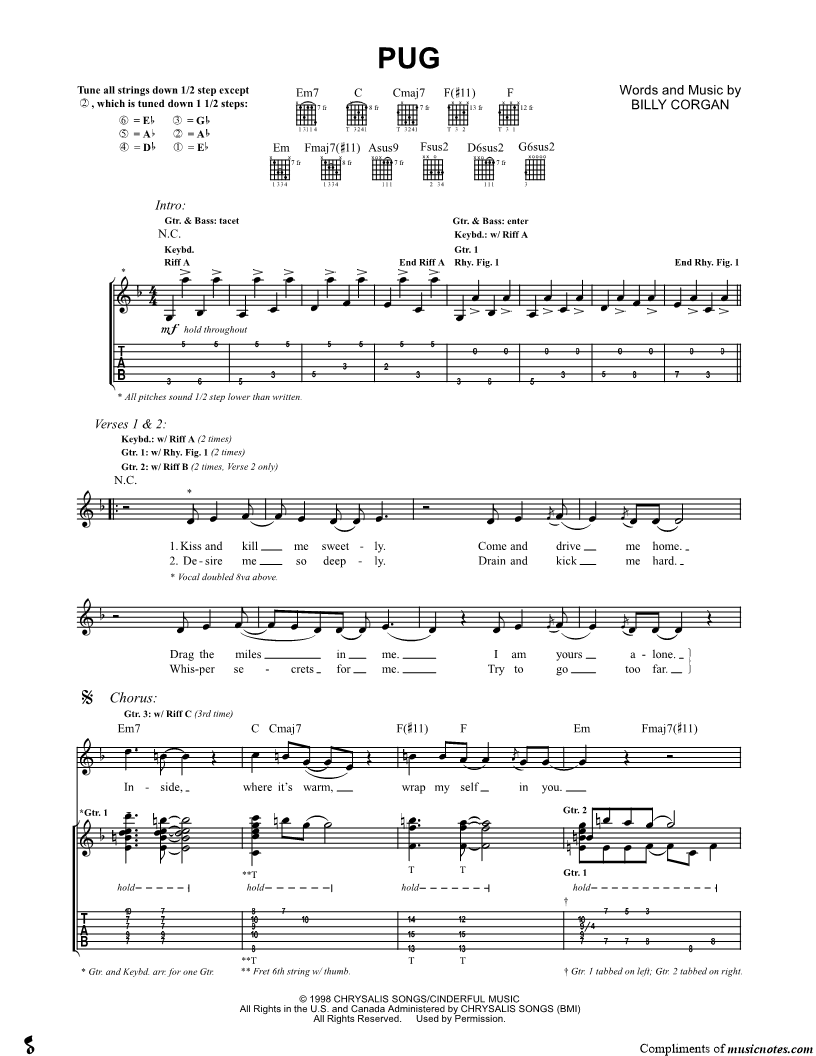Voice, range: D4-E5 Guitar 1, range: G3-E6 Guitar 2 Guitar 3 Backup Vocals | |