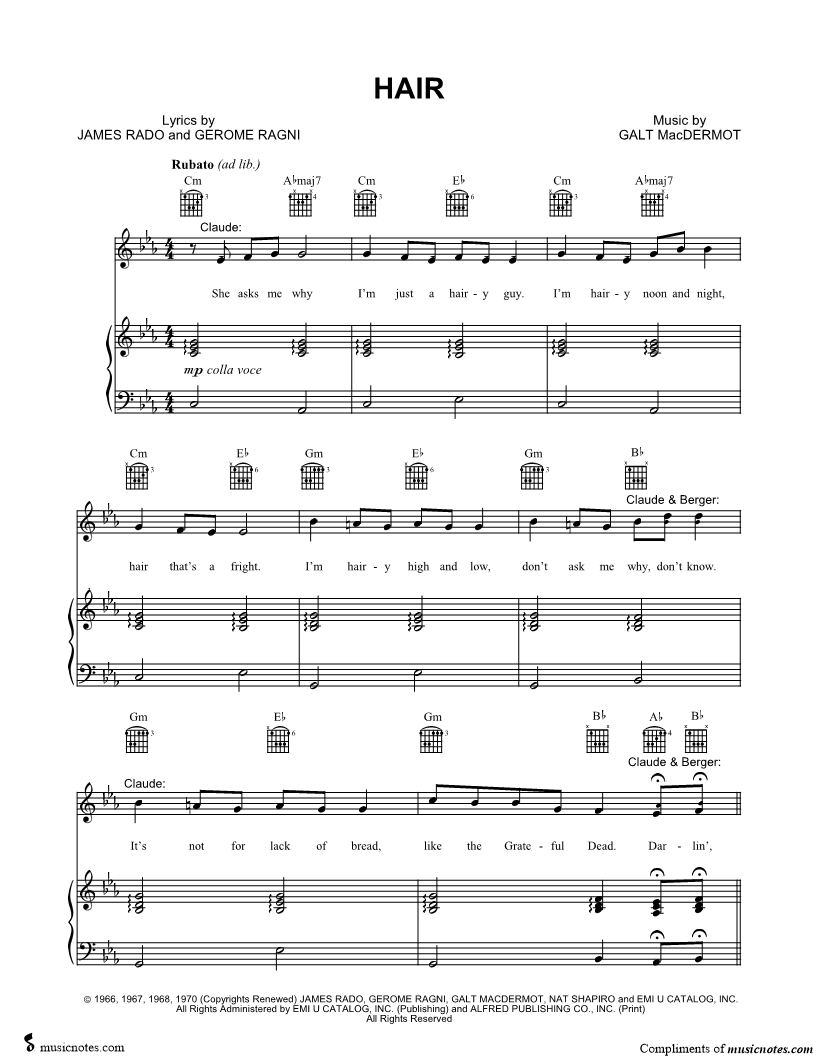 Fret Marker Lead Master Hair - Vocal Selections (Broadway Edition) |