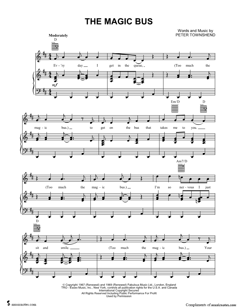 Ev'ry day I get in the queue, (Too much the magic bus.) to get on the bus that takes me to you. |
