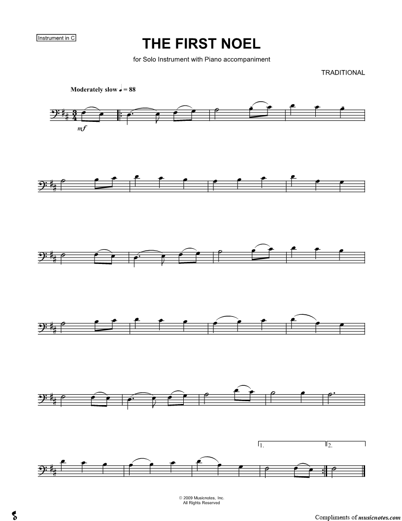 Bass Clef Instrument, range: D3-D4 (Cello, Double Bass, Trombone, Bassoon or Baritone Horn) | |