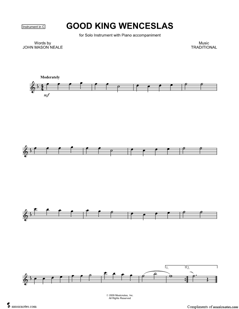 C Instrument, range: C4-C5 (Violin, Oboe, Flute or Recorder) | |