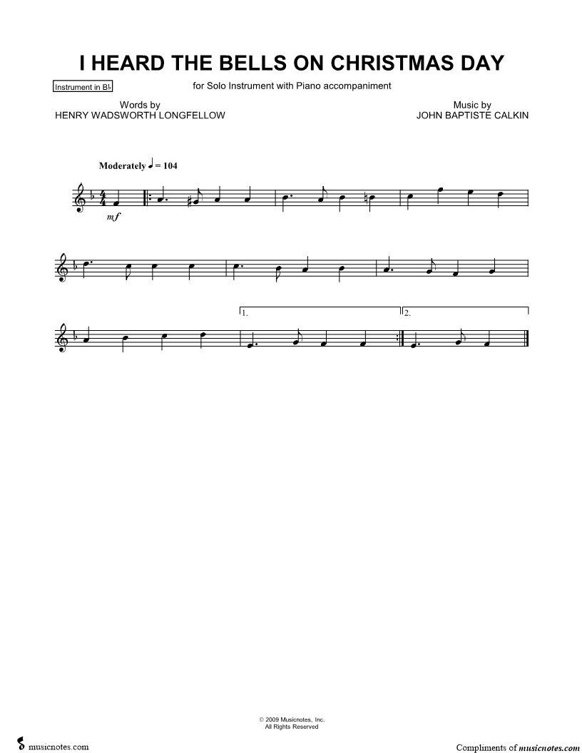 I Heard the Bells on Christmas Day - Bb Instrument |