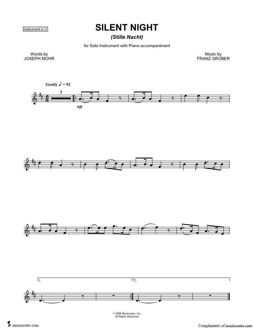 C Instrument, range: D4-G5 (Violin, Oboe, Flute or Recorder) | |