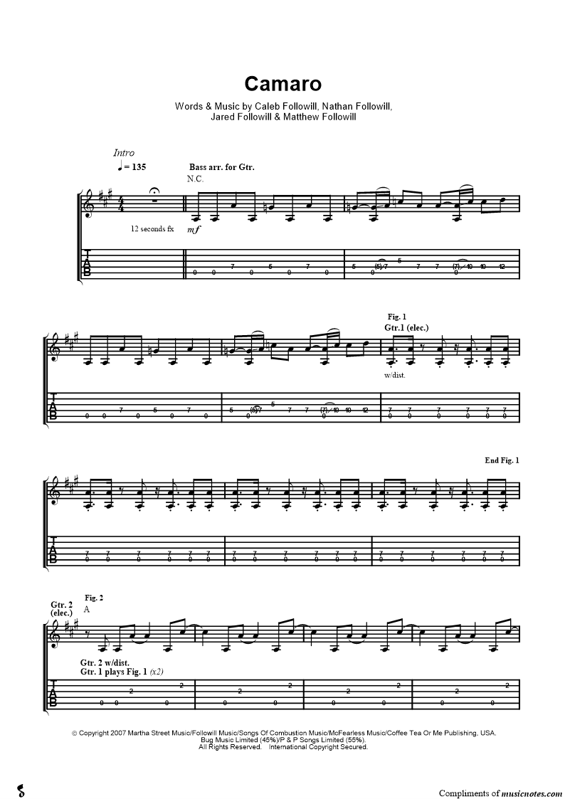 Guitar Tab Guitar/Vocal |