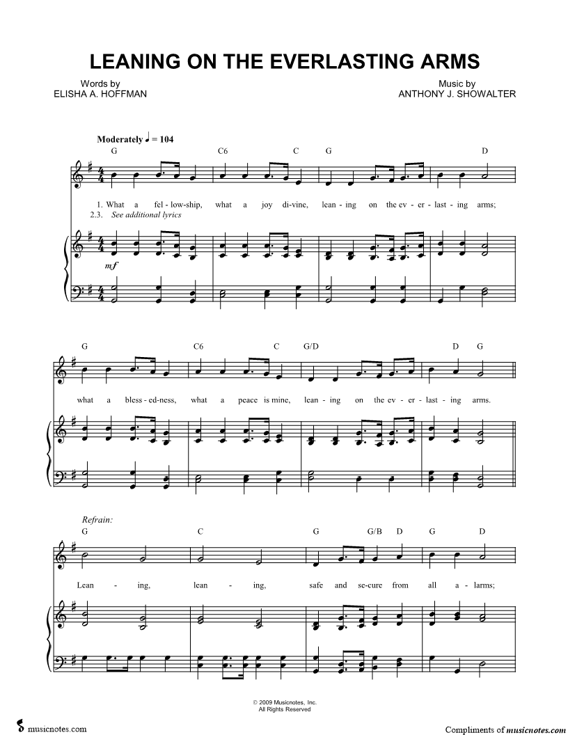 What a fellowship, what a joy divine, leaning on the everlasting arms; what a blessedness, what a peace is mine, leaning on the everlasting arms. |