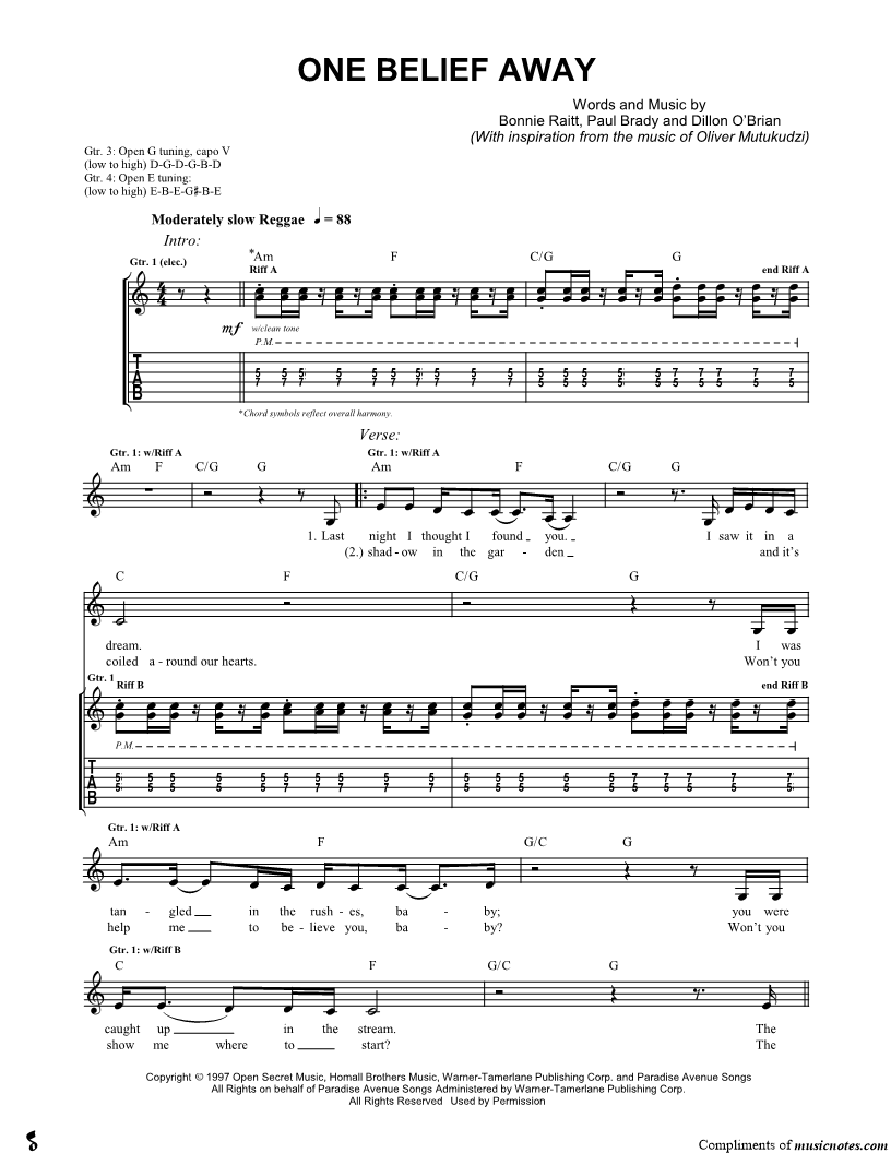 Guitar Tab Guitar/Vocal |