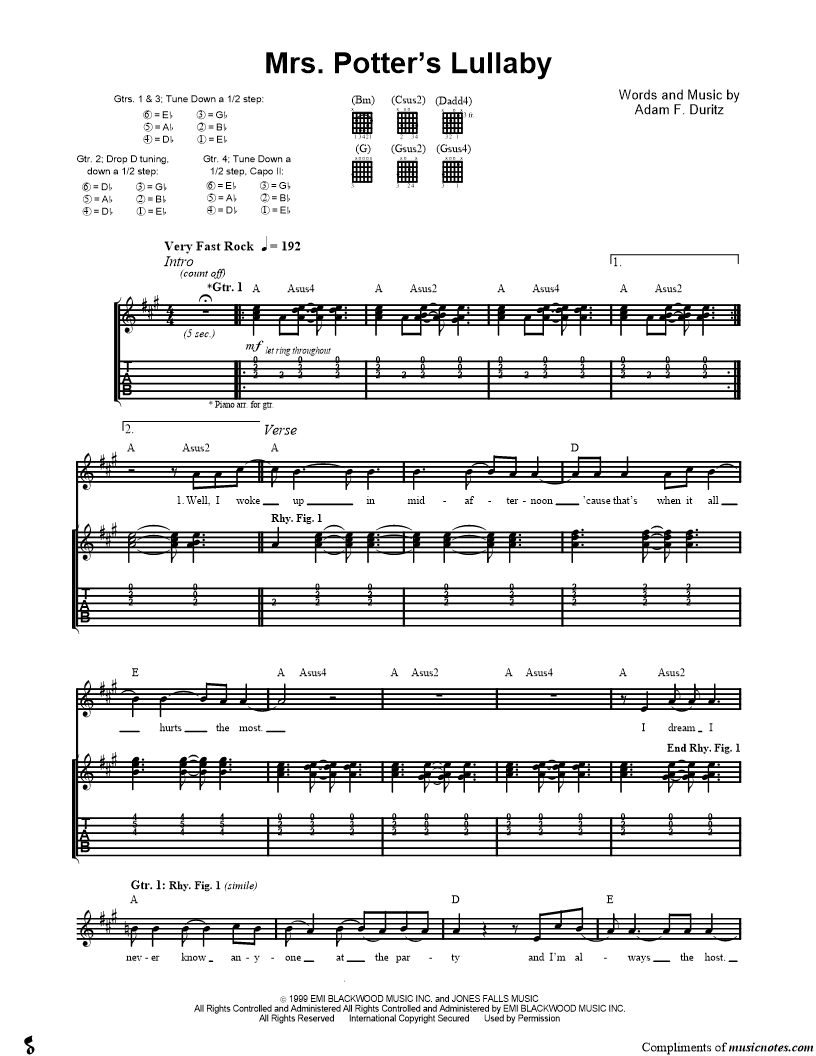 Guitar Tab Guitar/Vocal |