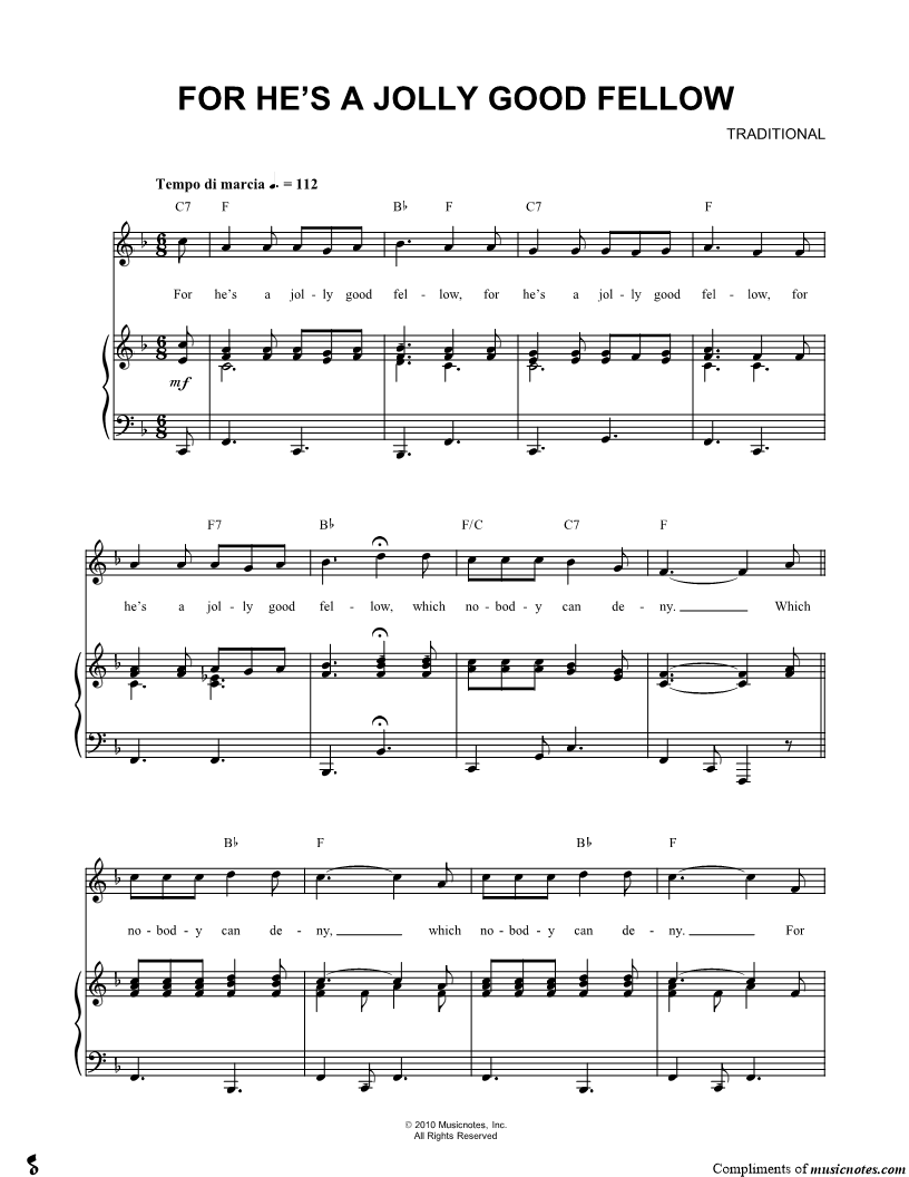 For He's a Jolly Good Fellow |