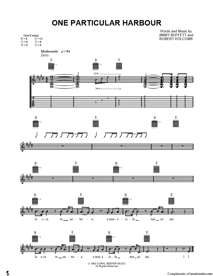 Guitar/Vocal Lyrics/Melody/Guitar Guitar Tab |