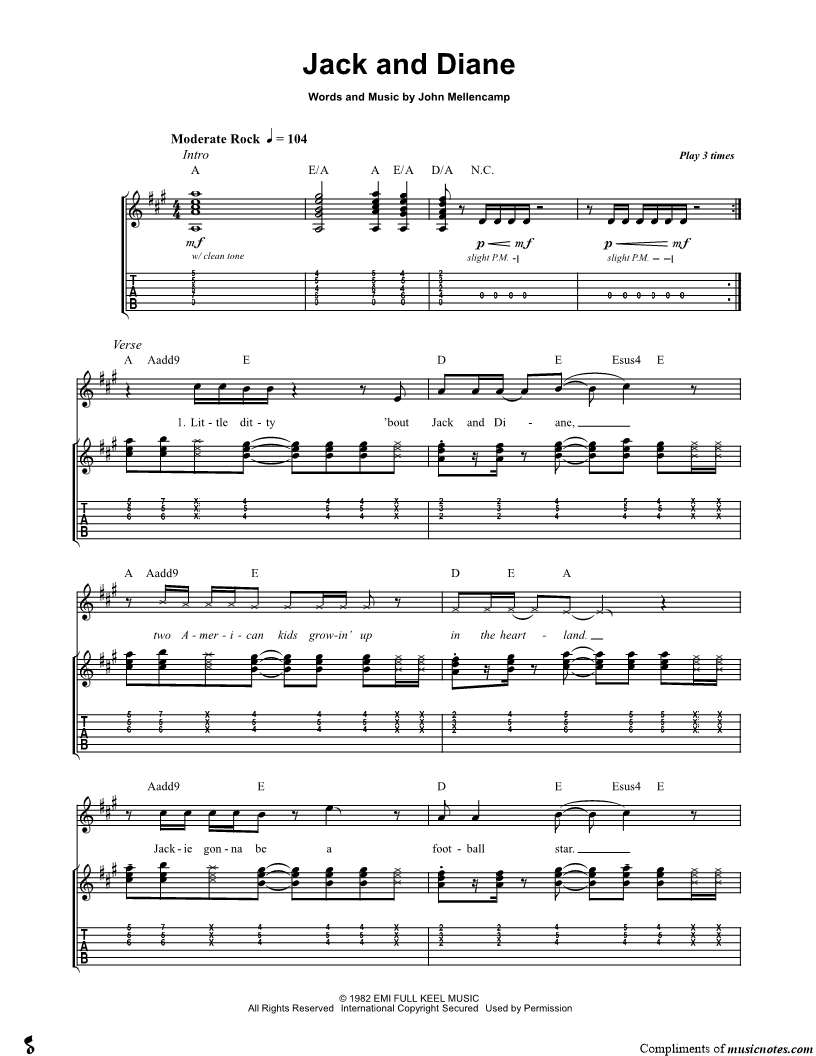 Little ditty 'bout Jack and Diane, two American kids growin' up in the heartland. |