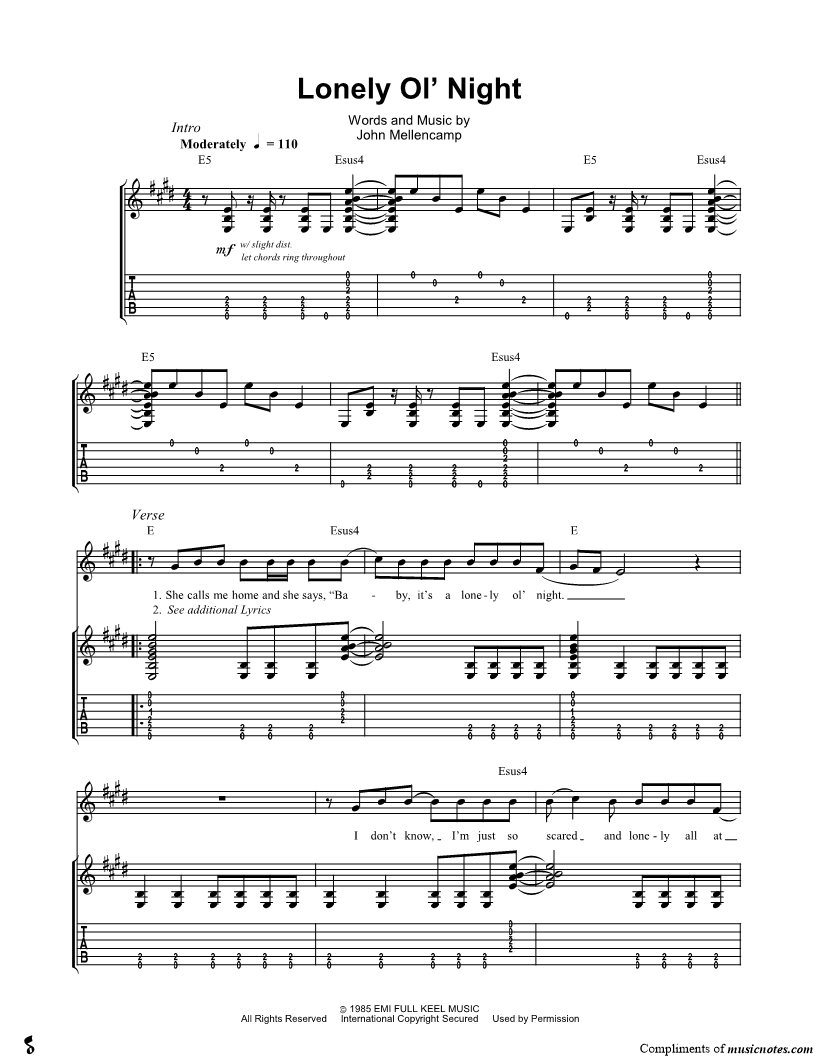 She calls me home and she says, "Baby, it's a lonely ol' night. |