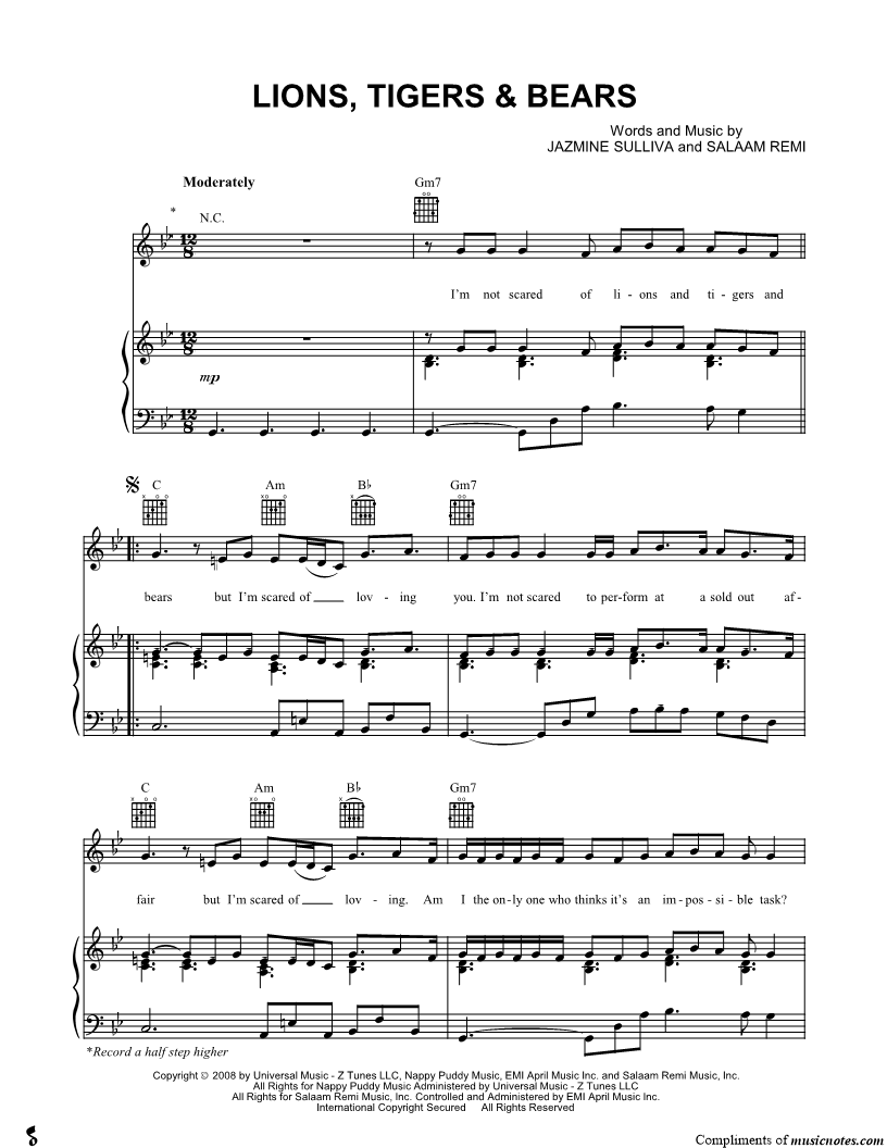 I'm not scared of lions and tigers and bears but I'm scared of loving you. |