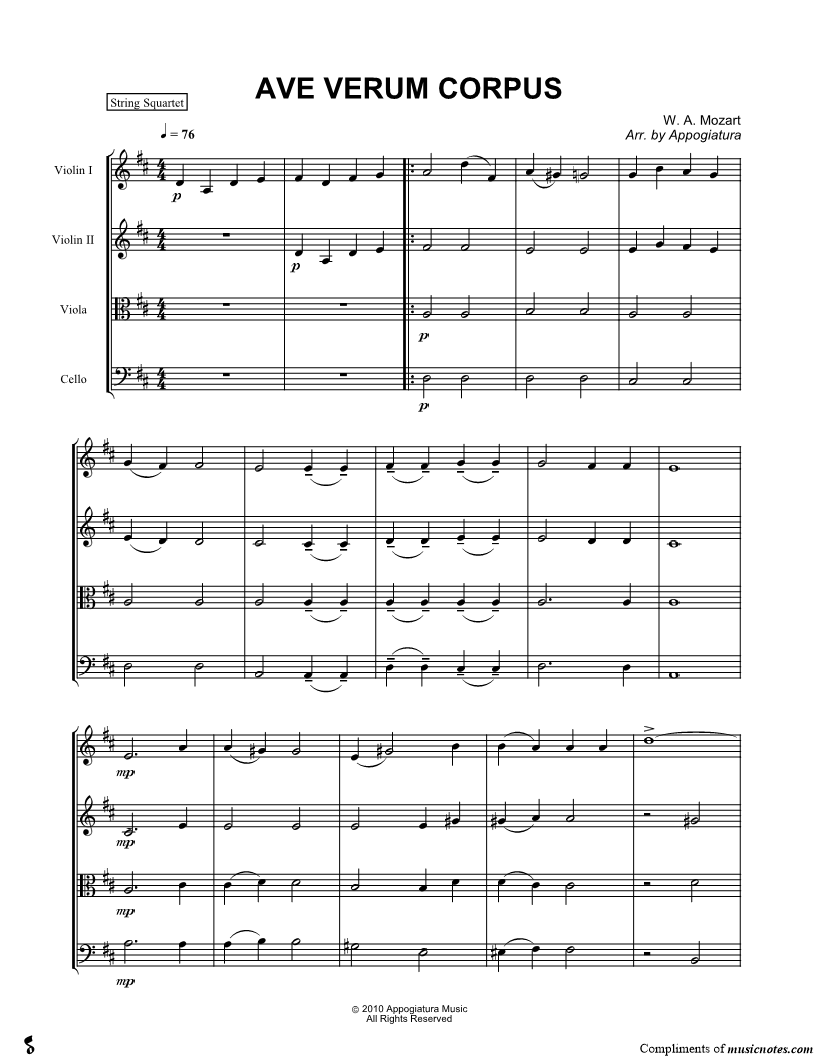 Ave verum corpus, K. 618 - Score (String Quartet) |
