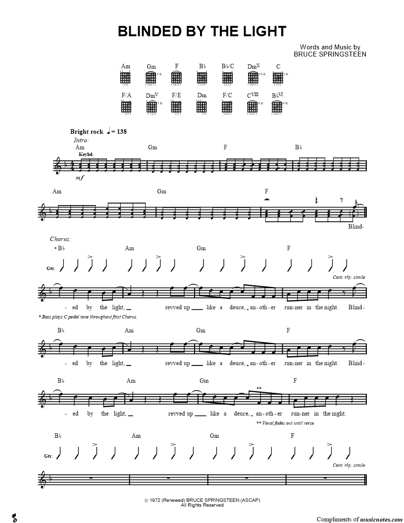 Blinded by the light, revved up like a deuce, another runner in the night. |