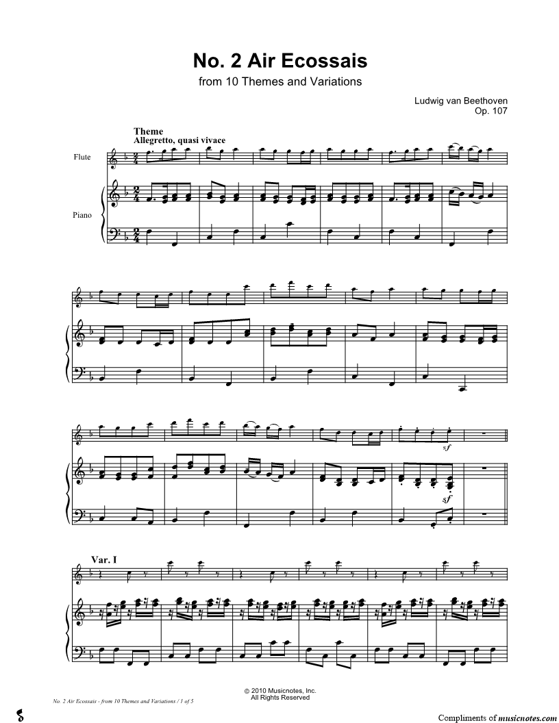 Air Ecossais, Op. 107, No. 2 - Flute & Piano from 10 Themes and Variations