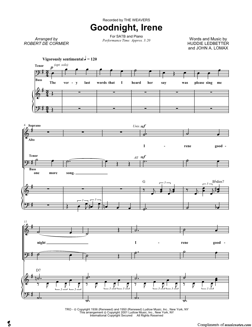 Irene goodnight Irene goodnight, goodnight Irene goodnight Irene, |