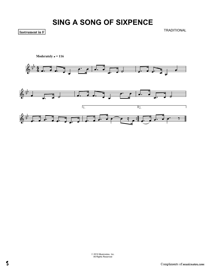 Sing a Song of Sixpence - F Instrument |