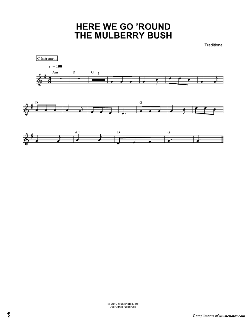 Here We Go 'Round the Mulberry Bush - C Instrument |