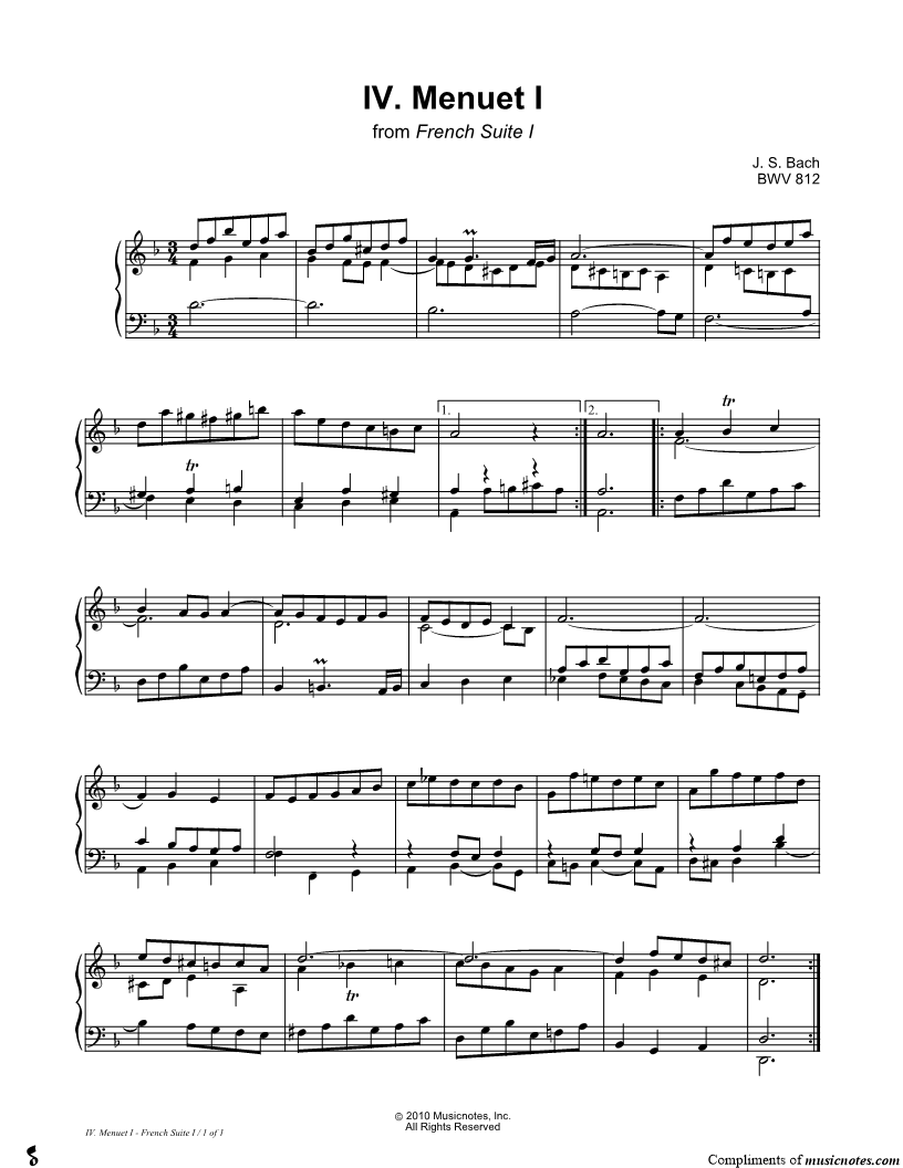 French Suite No. 1, BWV 812: IV. Menuet I |
