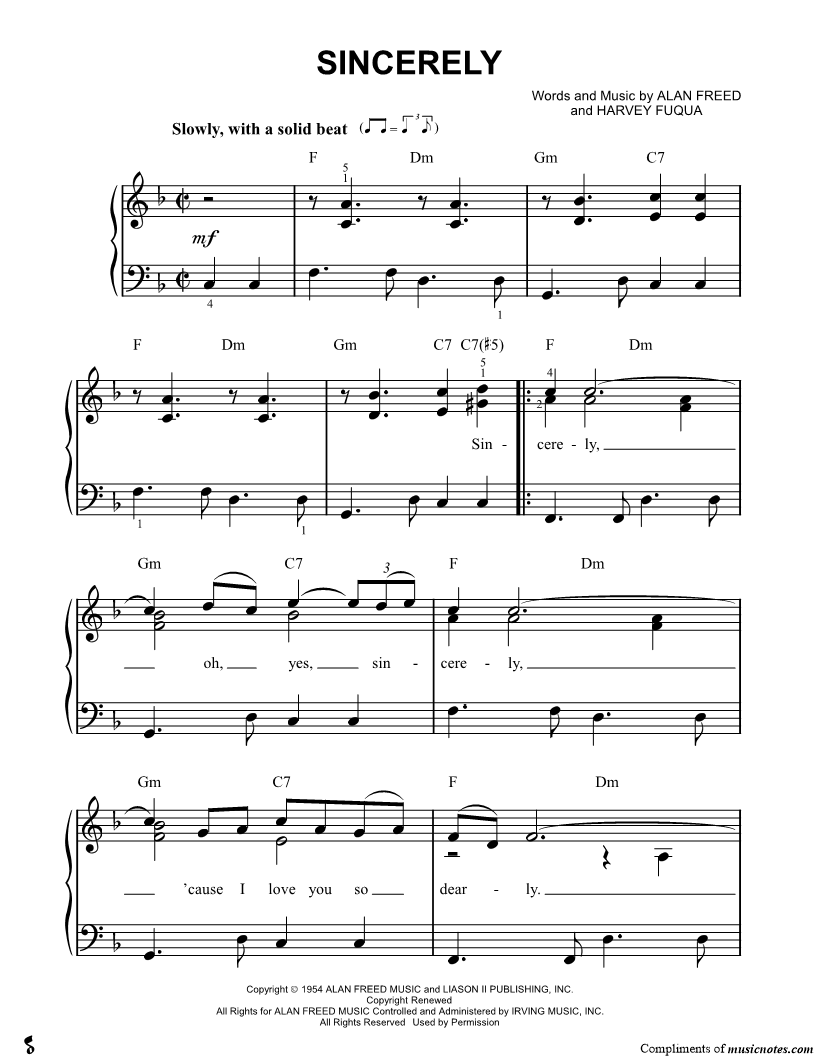 Sincerely, oh, yes, sincerely, 'cause I love you so dearly. |
