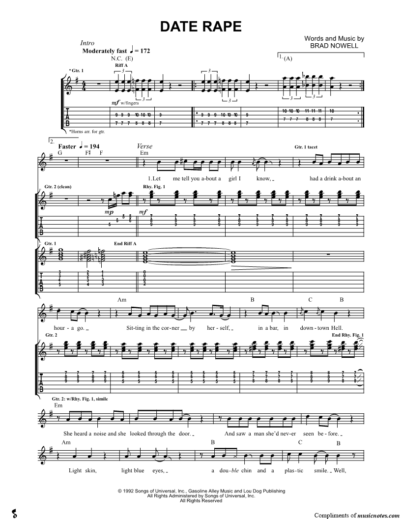 Guitar Tab Guitar/Vocal |