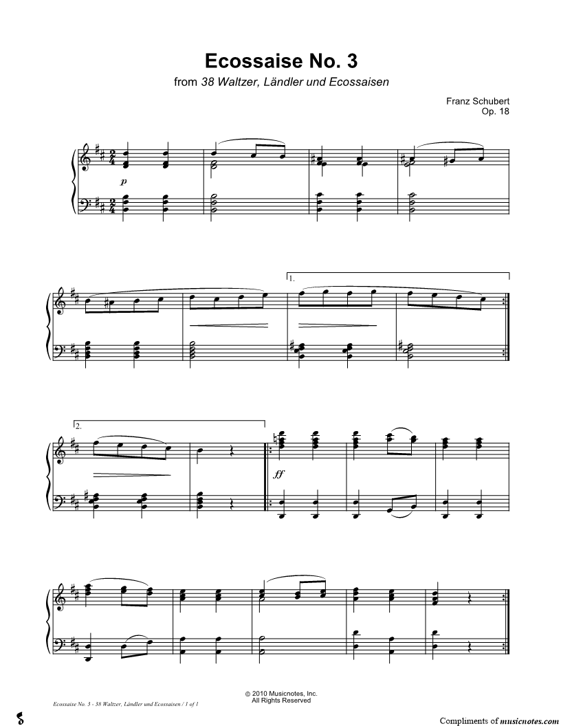 38 Waltzer, Ländler und Ecossaisen, Opus 18: Ecossaise No. 3 |